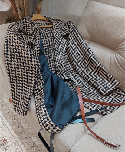 کت تک شیک زنانه همراه با کمربند باارسال رایگان جلوکارباآسترجنس پیردوبل اعلاازسایز38تا۴۶.فری سایز