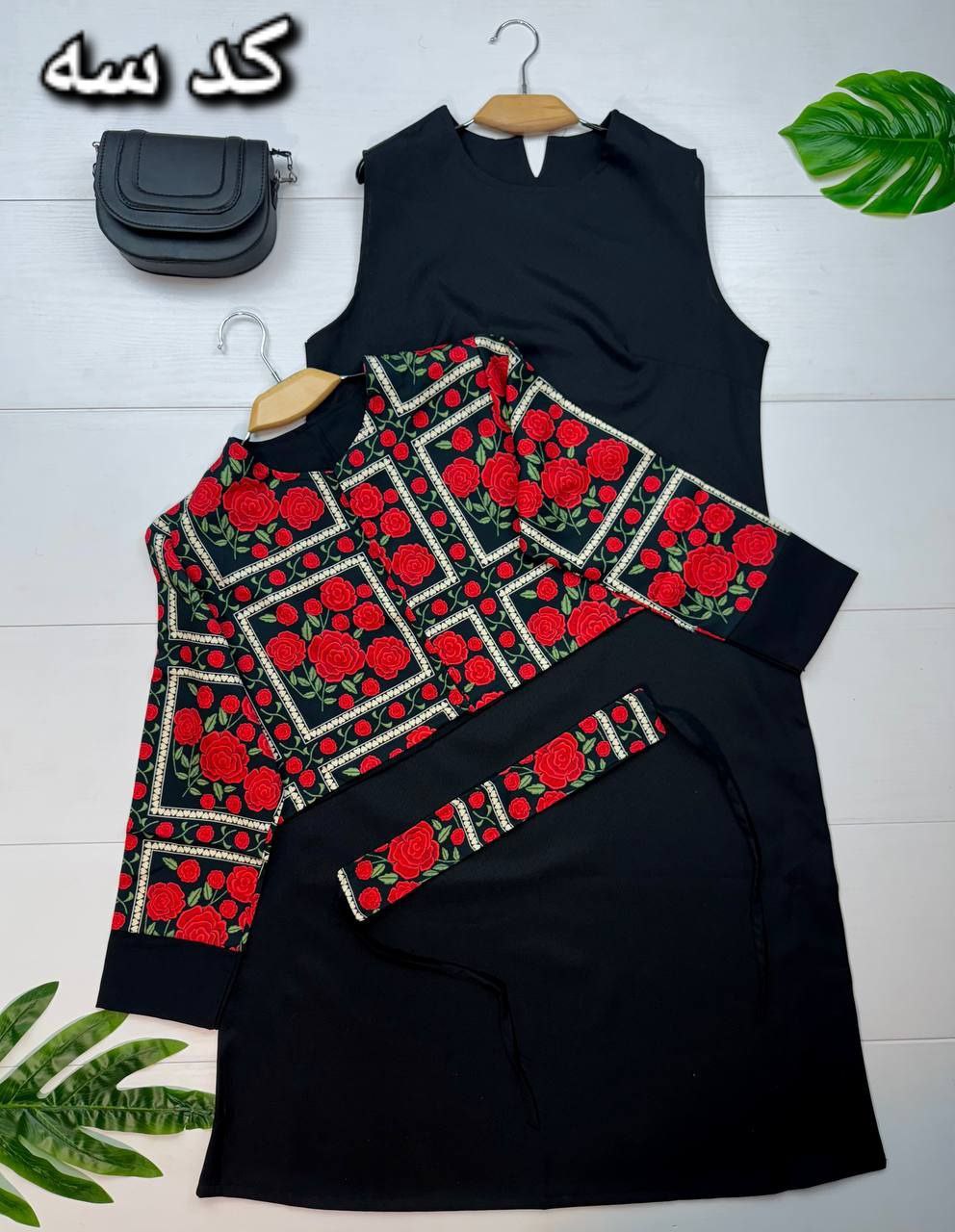سه تیکه زنانه کت و سارافون وکمربندشیک زنانه یلدایی باارسال رایگان فری سایز ۳۸تا۵۰بازم زیرنویس پایین سایت چک شود