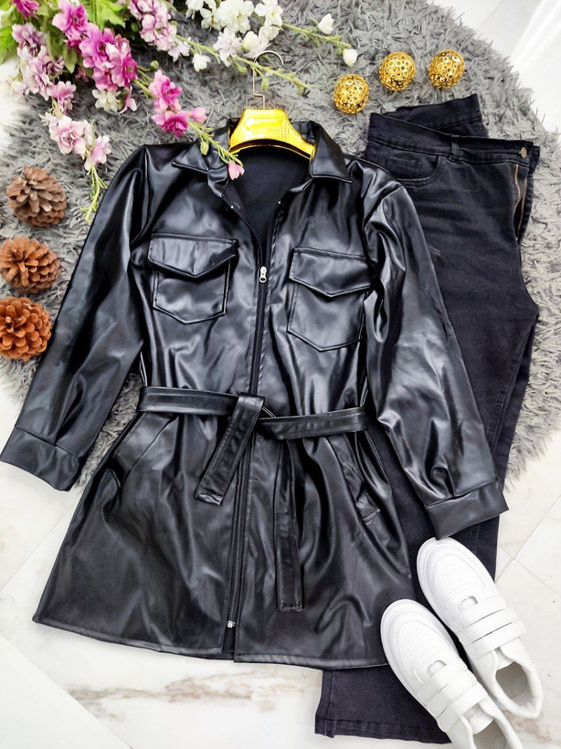 مانتوکتی چهارجیب شیک چرم زنانه باارسال رایگان