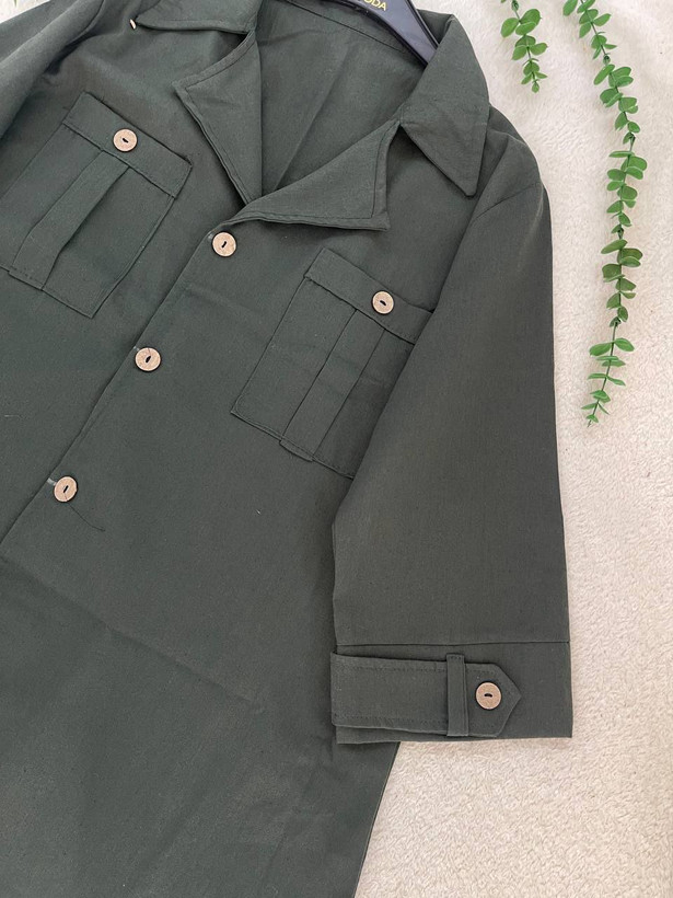 مانتو زنانه آستین فلشی لنین فری سایز سبز تیره