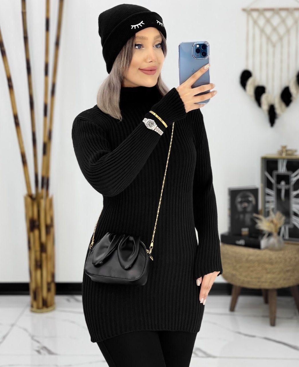 گپ بافت زنانه یقه اسکی شیک باارسال رایگان بدون کمربند